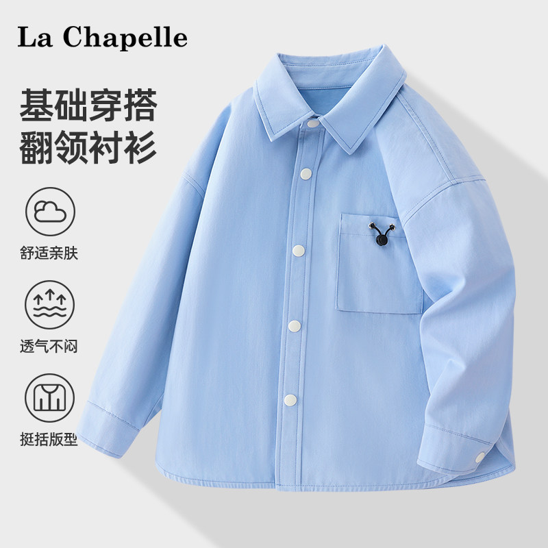 拉夏贝尔男童衬衫春秋款2024新款男大童时尚外套儿童纯棉衣服春装