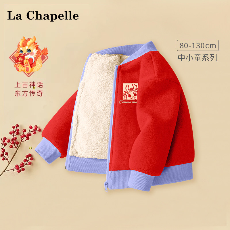 拉夏贝尔儿童羊羔绒外套男女童过年衣服红色拜年服婴幼童宝宝棉服