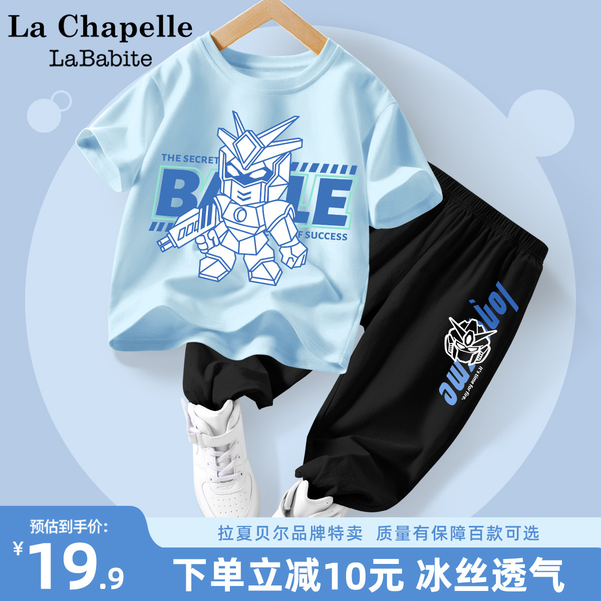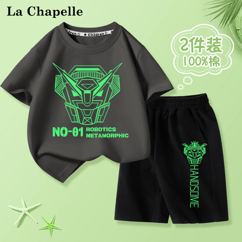 拉夏贝尔儿童套装男童夏季纯棉衣服2024新款男孩短袖夏装两件套潮