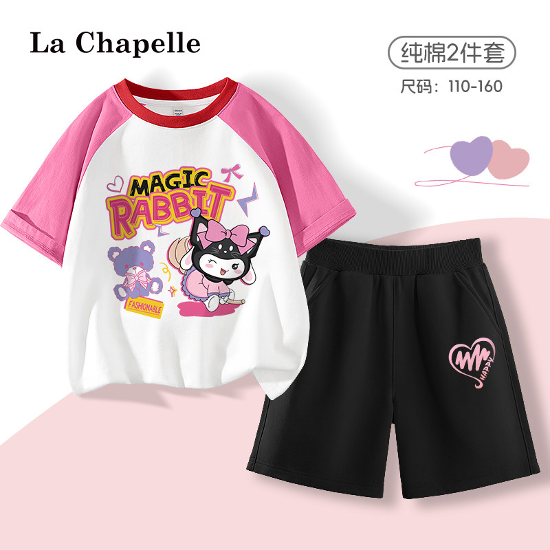 拉夏贝尔女童运动套装2024新款儿童夏季纯棉衣服女库洛米童装夏装