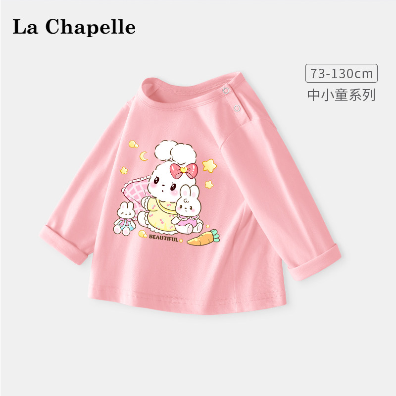 拉夏贝尔儿童长袖打底衫女童t恤上衣2024新款圆领女孩纯棉衣服潮