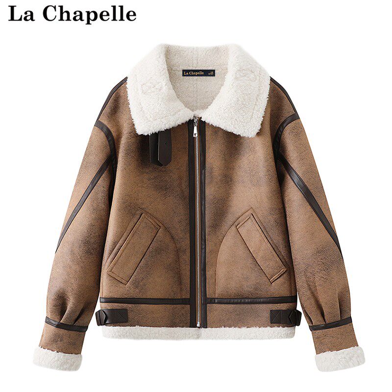 拉夏贝尔/La Chapelle冬美拉德皮毛一体外套加厚麂皮绒羊羔绒棉服