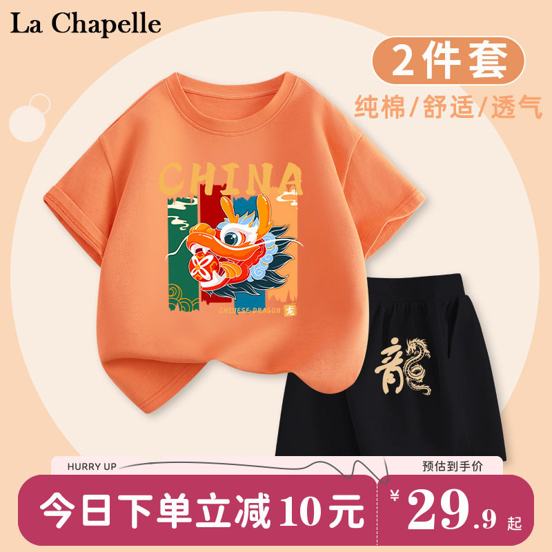 拉夏贝尔男童夏装套装2024新款夏款短袖儿童纯棉衣服夏季宝宝童装