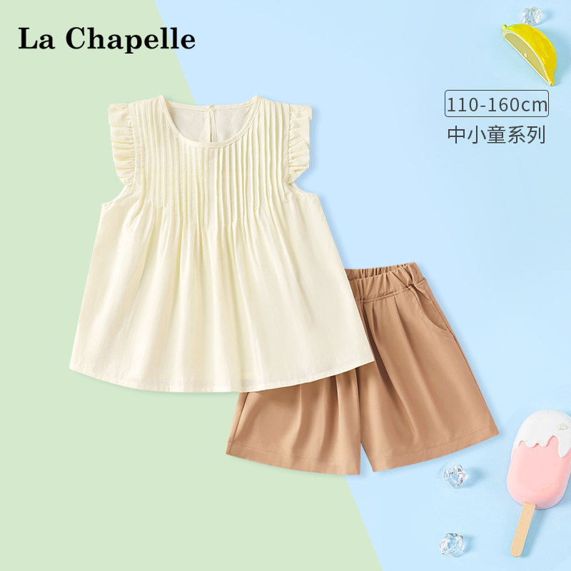 拉夏贝尔女童套装夏装儿童纯棉衣服2024新潮款女孩飞袖短裤两件套