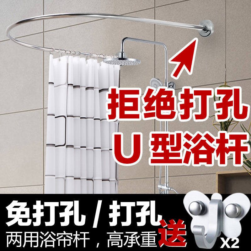 挑三拣四免打孔U型浴帘杆卫生间不锈钢浴帘架简易淋浴房浴帘套装