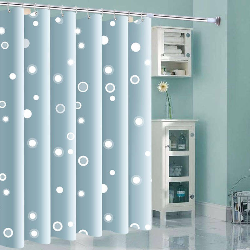 加厚高档浴帘布浴室防水浴帘套装免打孔伸缩杆卫生间隔断帘窗帘子