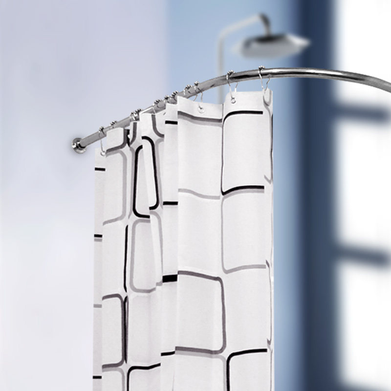 挑三拣四卫生间浴室套装304不锈钢L型弧形浴帘杆+浴帘+金属环包邮
