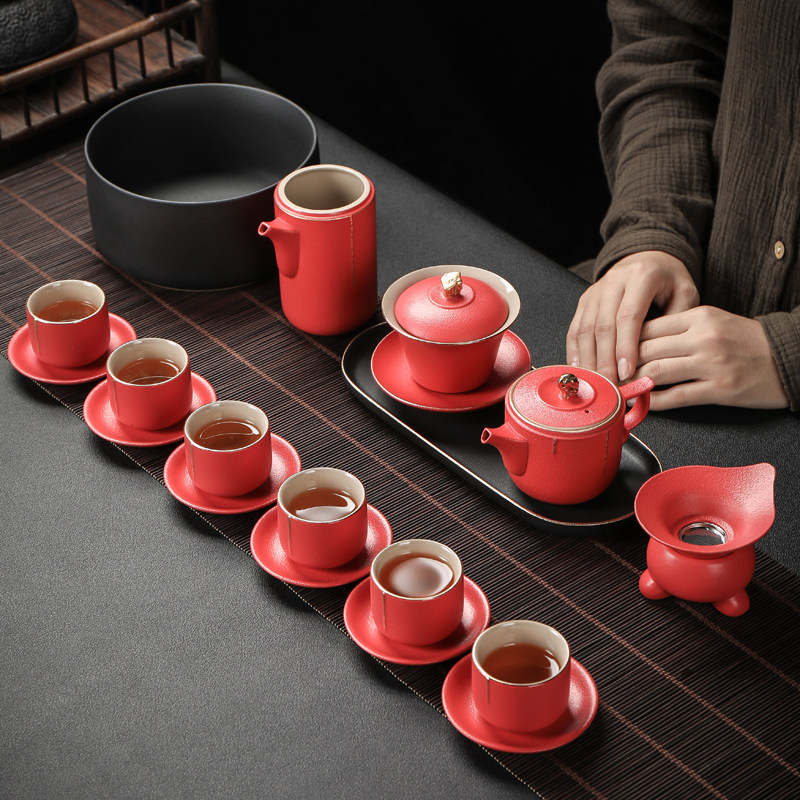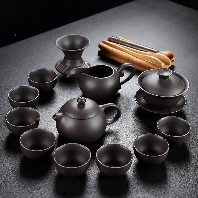 旧望格粗陶功夫茶具整套办公家用泡茶器黑陶盖碗茶壶礼盒套组