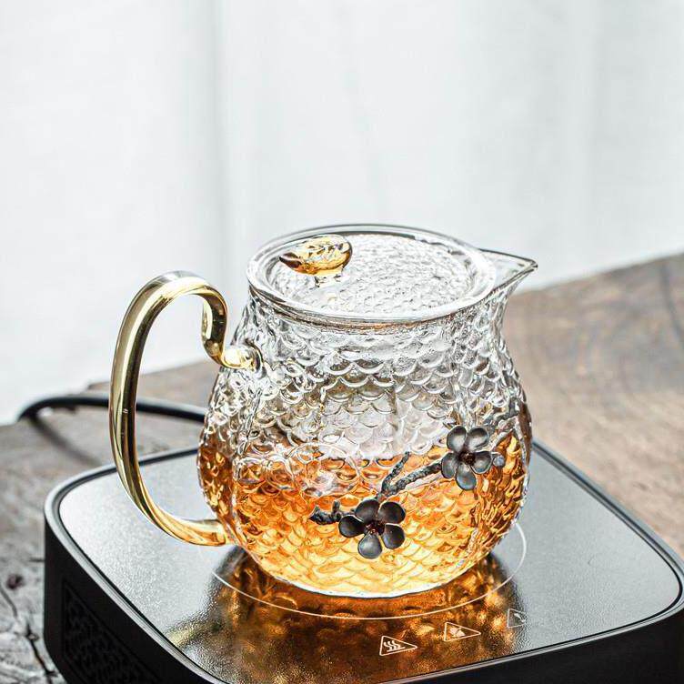 旧望格玻璃煮茶壶泡茶壶带过滤茶漏内胆花茶壶镶锡花耐热功夫茶具