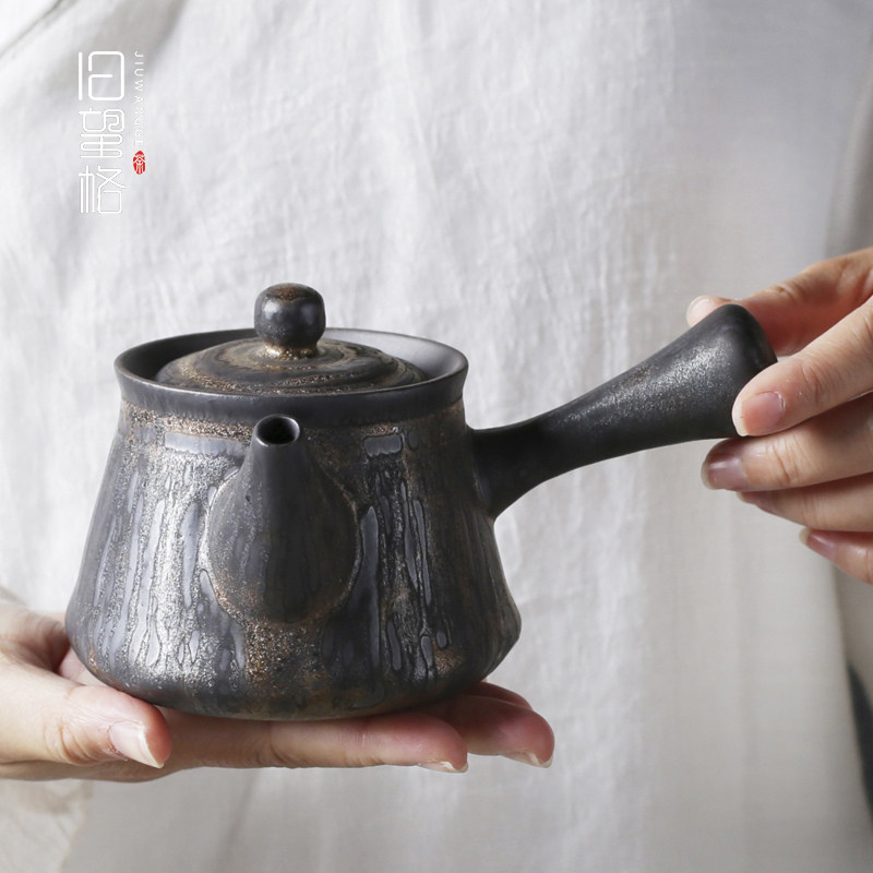 旧望格鎏金铁锈釉陶瓷茶壶家用日式复古手工侧把壶功夫茶具单壶