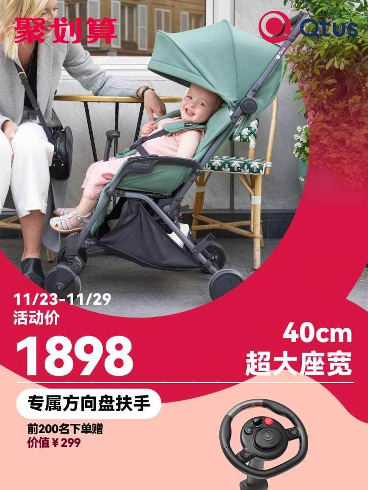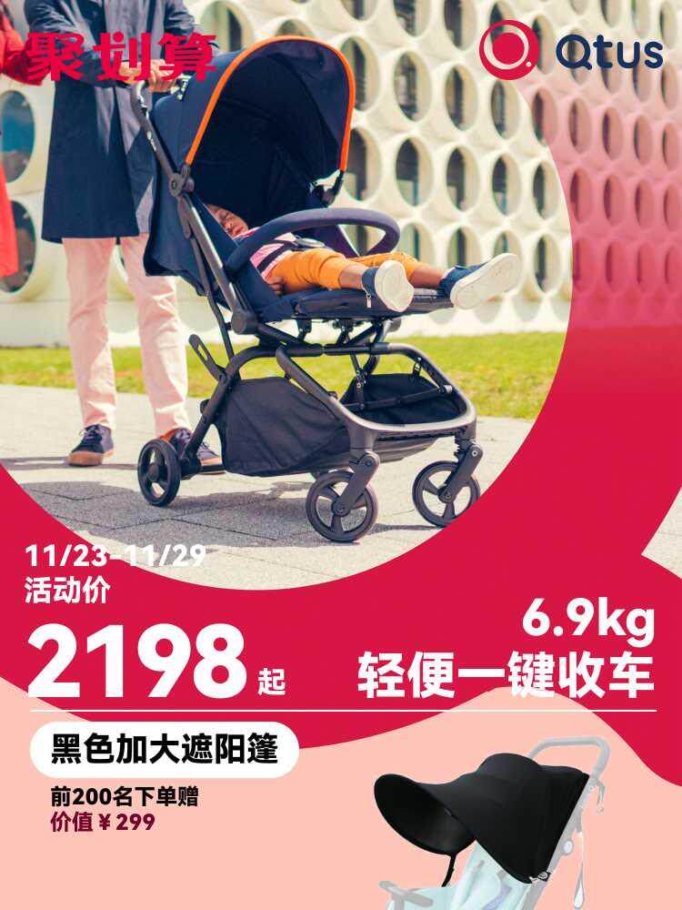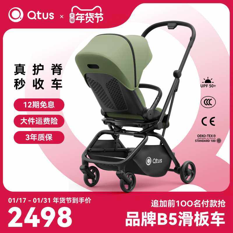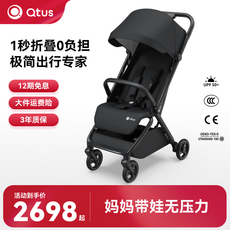 Qtus昆塔斯Q1小怪兽婴儿推车可坐可躺轻便折叠登机更宽座舱儿童车