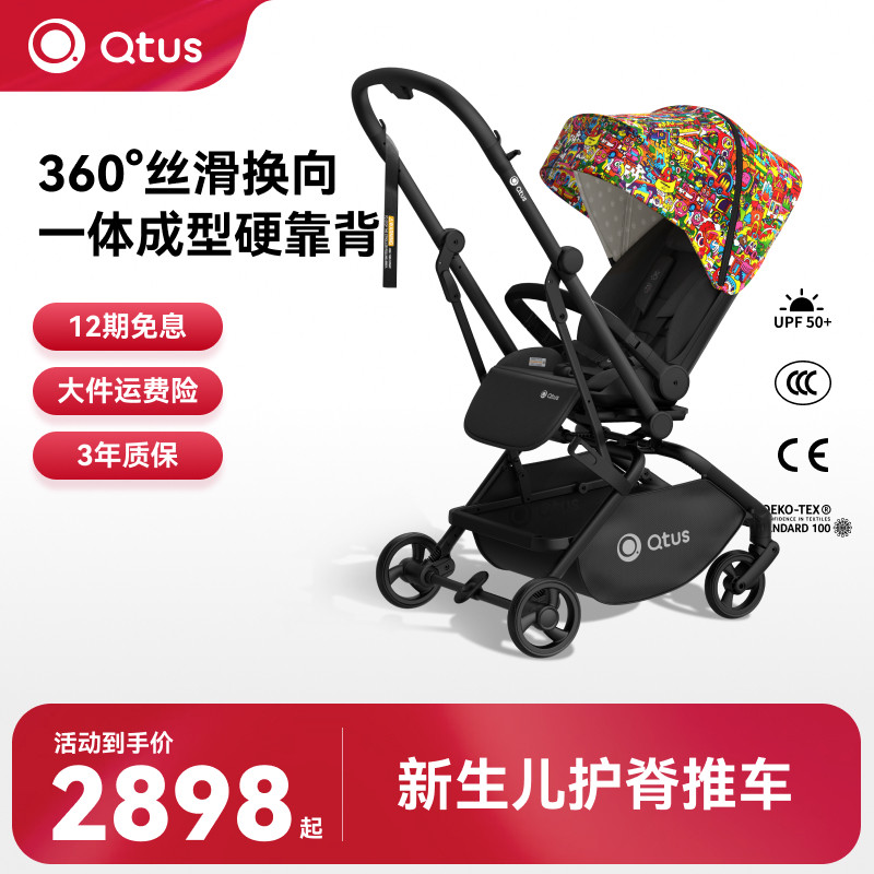 Qtus昆塔斯艺术家联名Jon Burgerman小怪咖Q9Plus2代婴儿宝宝推车