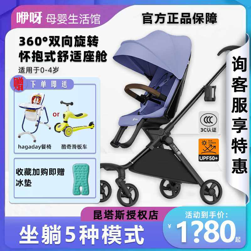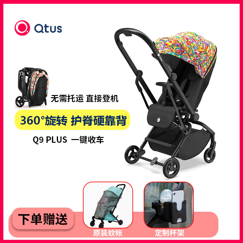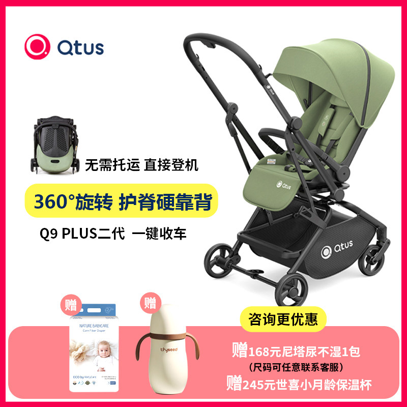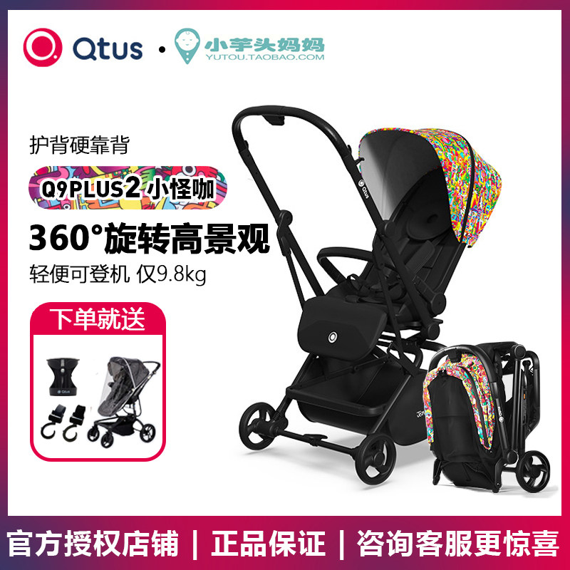 Qtus昆塔斯q9plus2代360度旋转高景观婴儿推车一键折叠轻便可登机