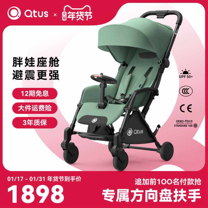 Qtus昆塔斯Q1婴儿推车小怪兽可坐躺轻便折叠登机更宽座舱儿童推车