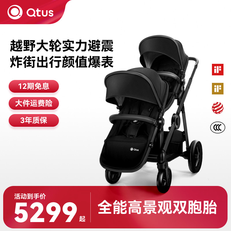 Qtus昆塔斯Q11双胞胎婴儿车双向折叠高景观新生婴儿推车