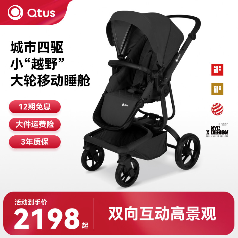 Qtus昆塔斯Q2婴儿车高景观可坐可躺减避震可折叠宝宝推车婴儿推车