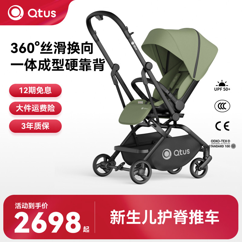 Qtus昆塔斯婴儿推车Q15 2代婴儿车一键双向高景观可坐躺婴儿推车