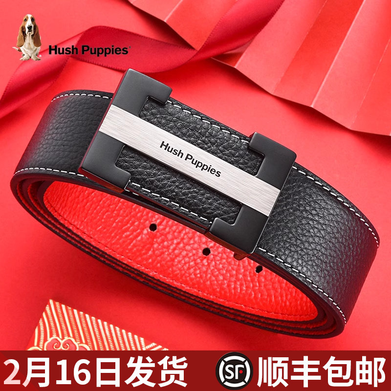 暇步士皮带本命年礼物红腰带男士真皮龙年结婚针扣名牌年轻人属龙