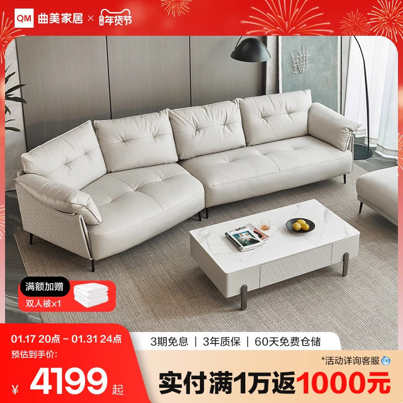 曲美家居北欧布艺沙发简约现代轻奢大小户型客厅整装科技布乳胶新