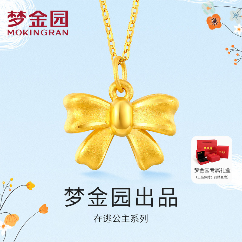 梦金园在逃公主系列可爱蝴蝶结黄金项链吊坠5D硬足金七夕礼物2130