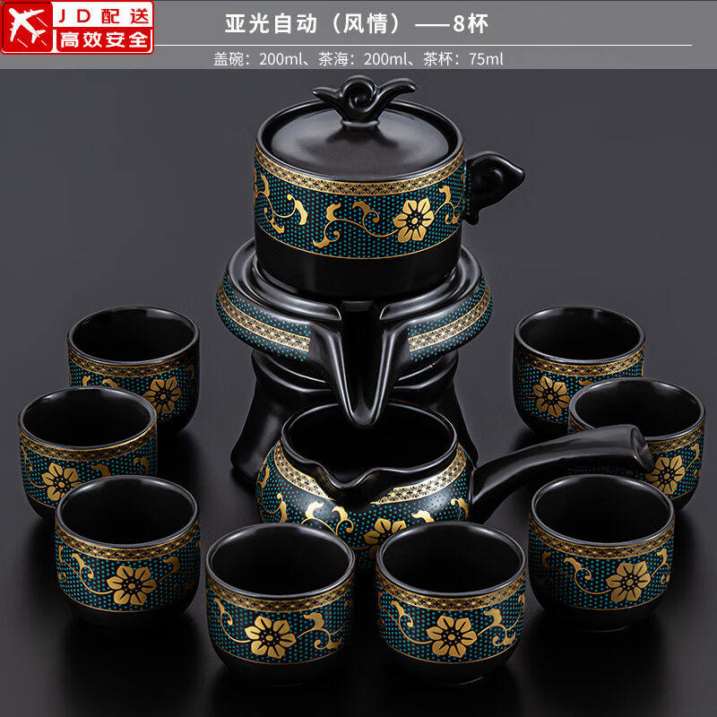 正扬石磨自动茶具套装家用亚光西域风情懒人泡茶壶冲茶器复古功夫