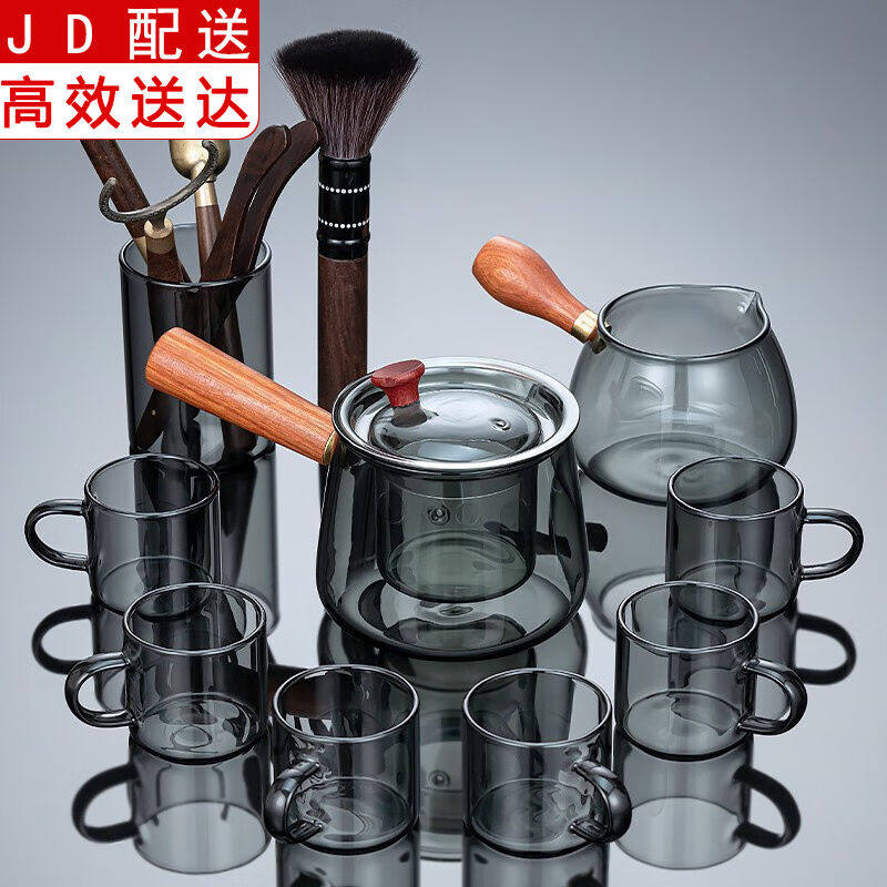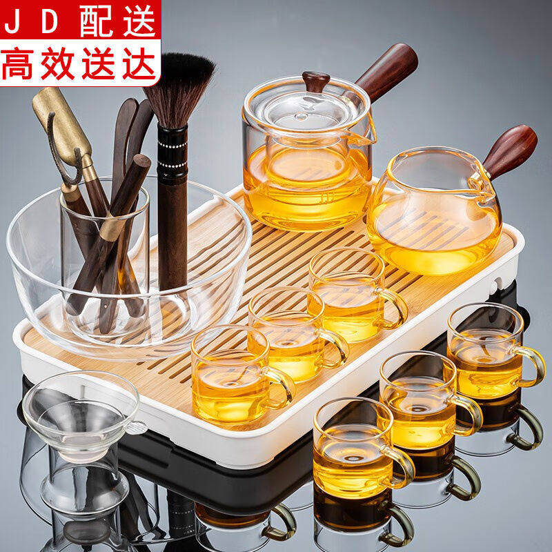 正扬玻璃功夫茶具小套装家用茶杯侧把茶壶耐热茶盘整套简约办公室