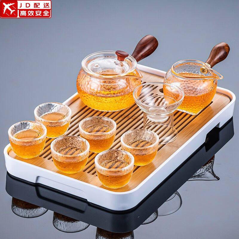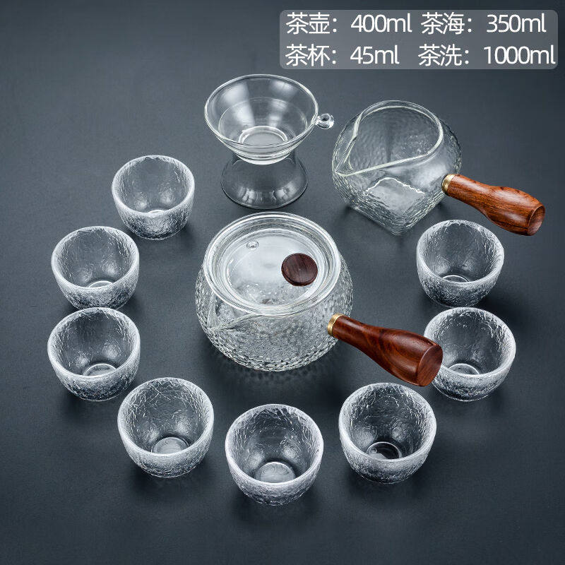 正扬锤纹玻璃茶具套装家用双侧把功夫泡茶壶加厚耐热茶杯整套茶盘