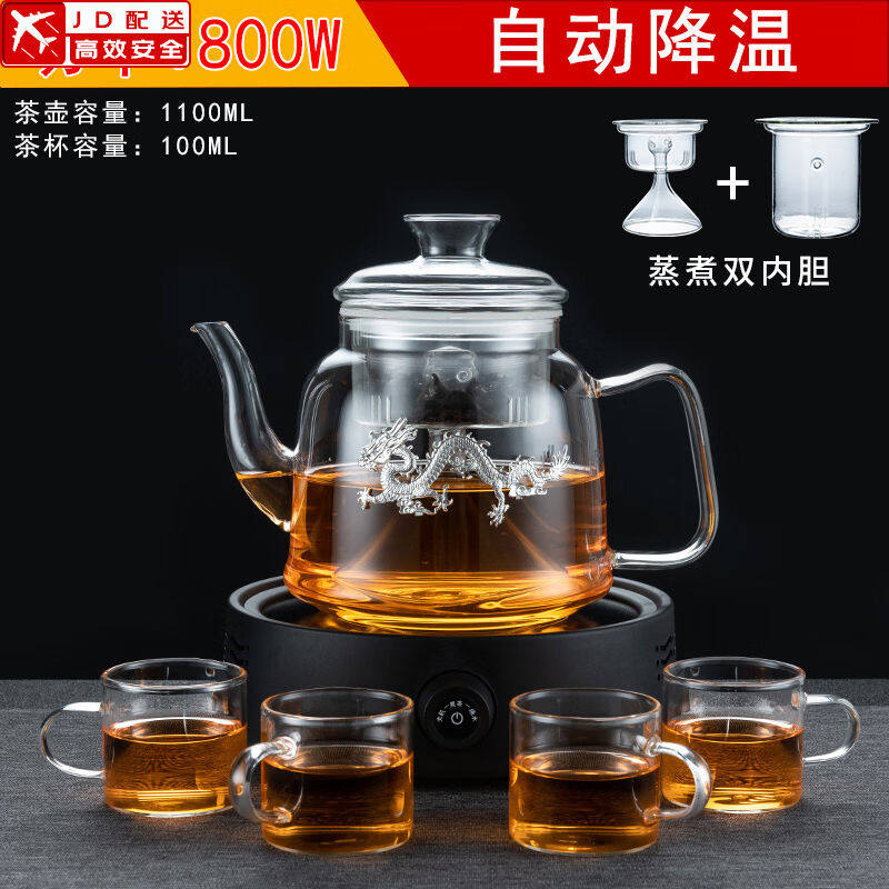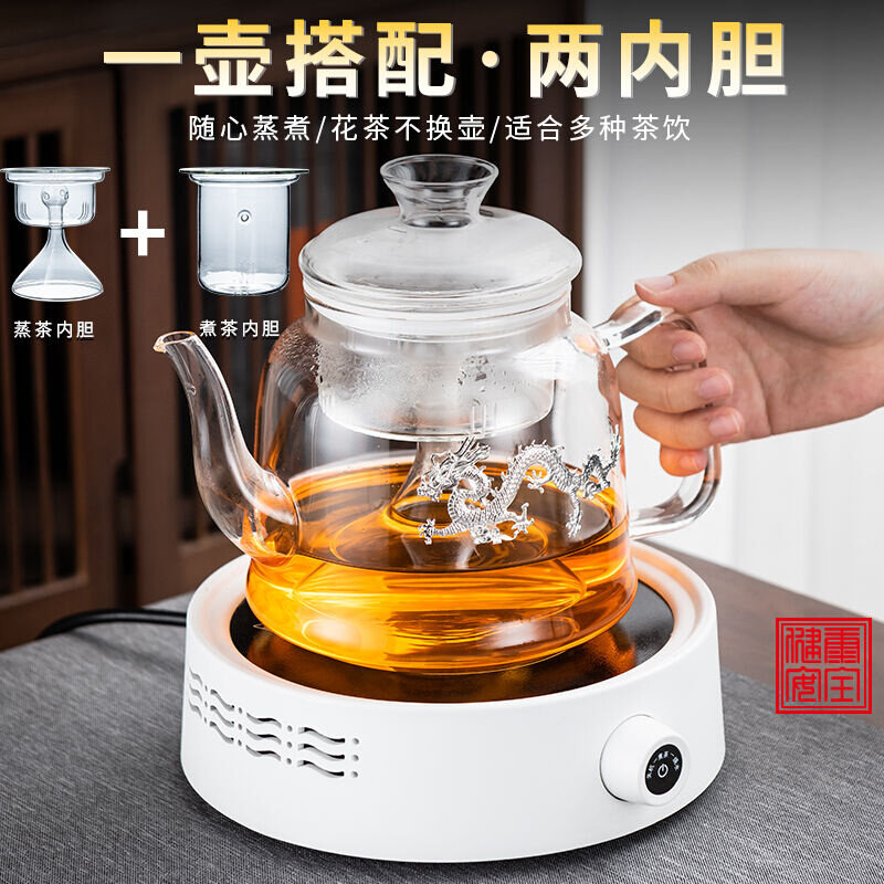 正扬电陶炉煮茶器玻璃烧水壶煮茶壶功夫茶具套装家用养生壶泡茶蒸