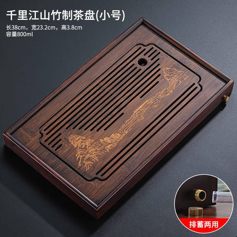 正扬竹制功夫茶盘托盘家用茶具套装茶台长方小号蓄排两用简约办公