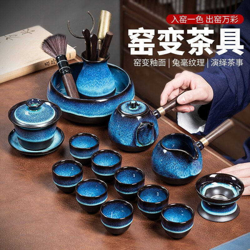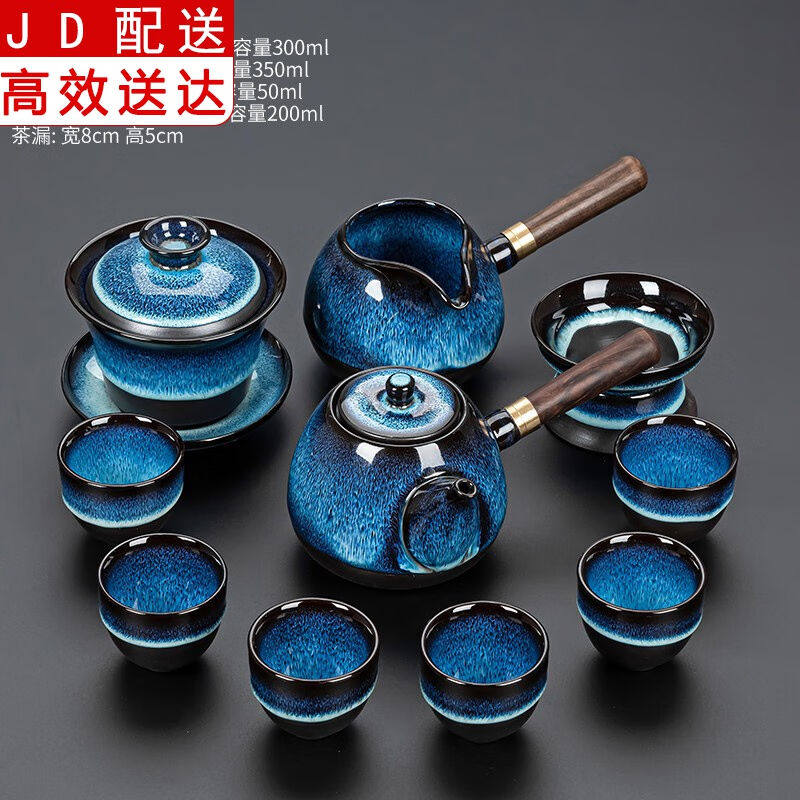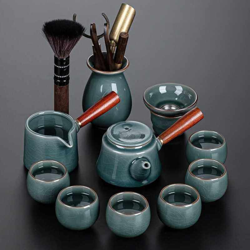 正扬哥窑功夫茶具套装家用陶瓷茶杯侧把茶壶蝉翼开片办公室会客喝