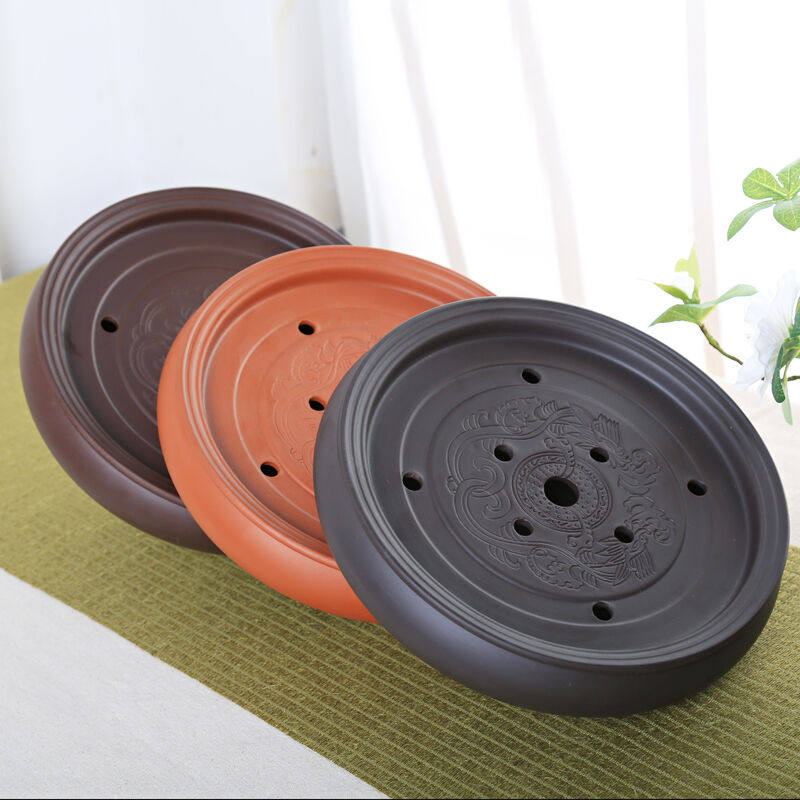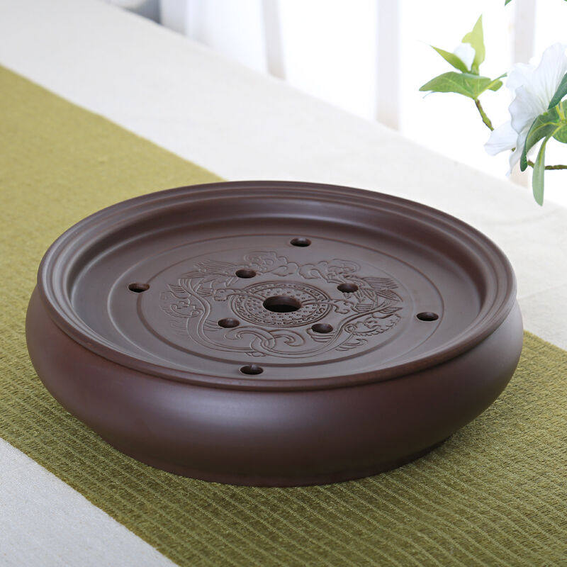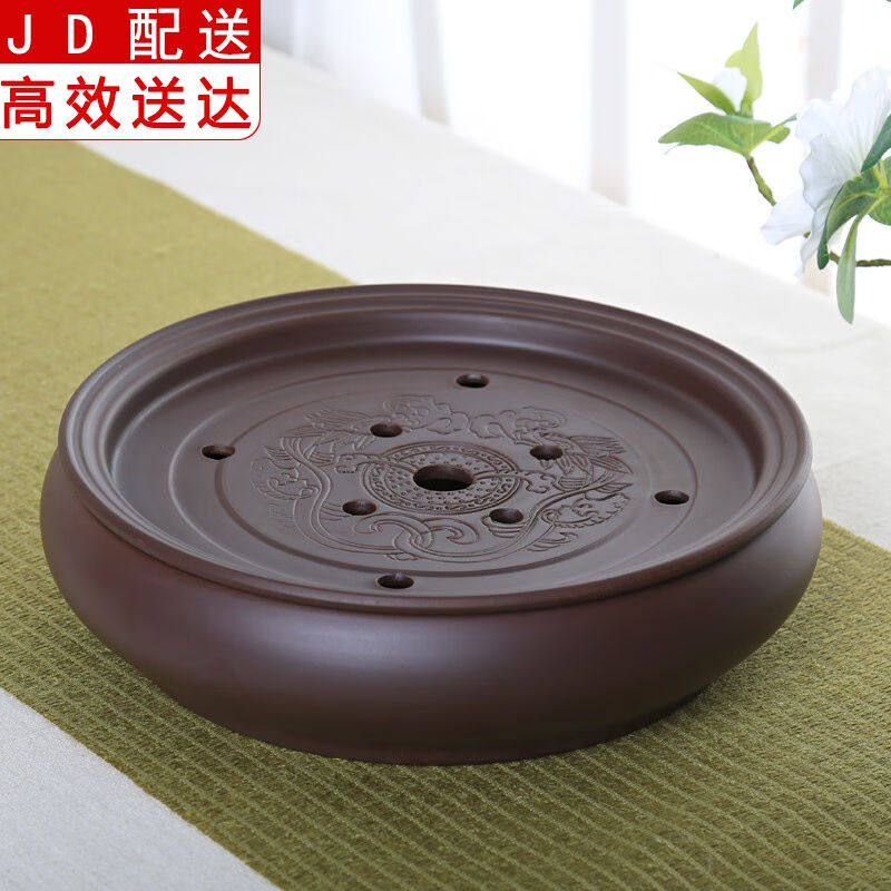 正扬紫砂茶盘托盘圆型手工小号功夫茶具套装茶海茶台陶瓷干泡盘储