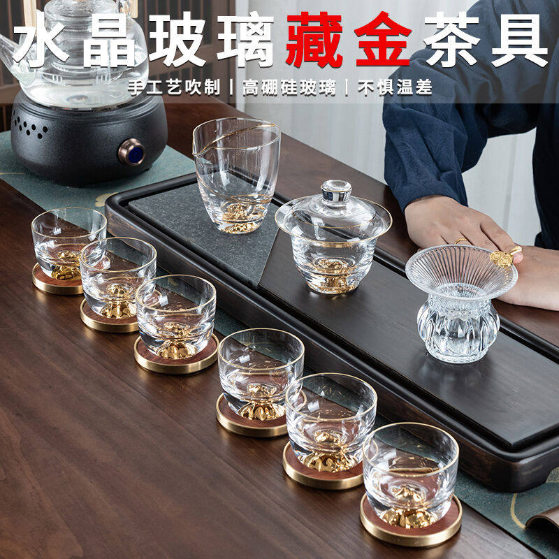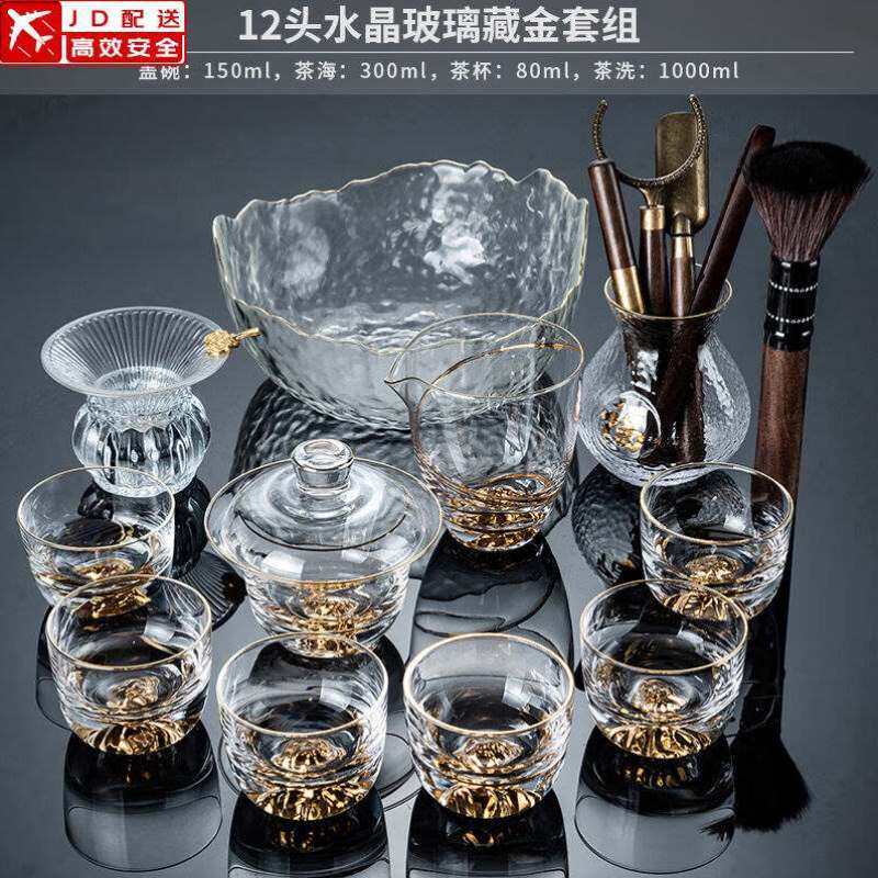 正扬玻璃茶具套装家用整套耐热描金手工功夫三才盖碗大号茶杯茶道
