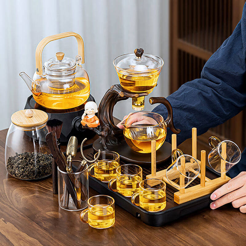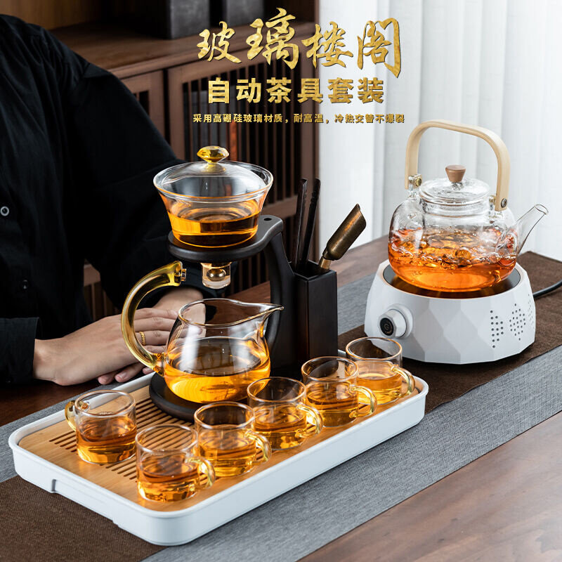 正扬玻璃自动茶具套装家用懒人磁吸泡茶神器整套功夫茶茶杯茶壶三