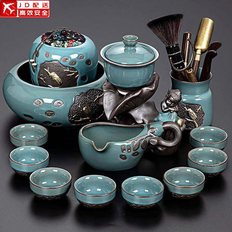 正扬哥窑自动茶具套装家用盖碗懒人泡茶器茶盘功夫茶道茶杯陶瓷礼