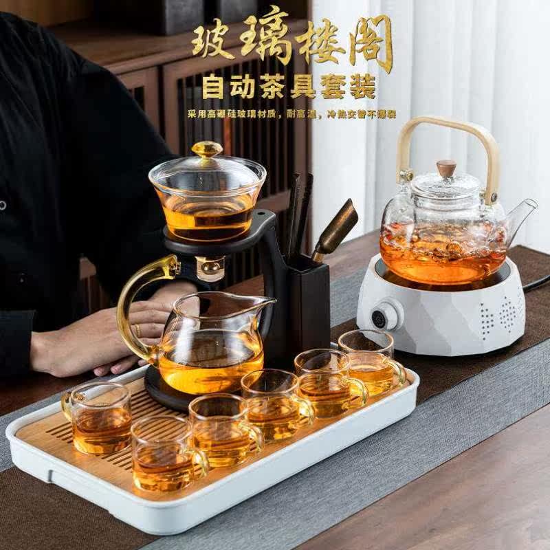 正扬玻璃自动茶具套装家用懒人泡茶器电陶炉煮茶器磁吸功夫茶壶茶