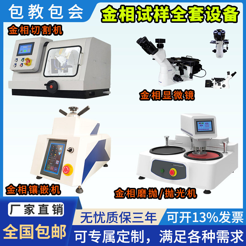 金相高速精密试样设备四件套金相切割机磨抛机镶嵌机显微镜厂家