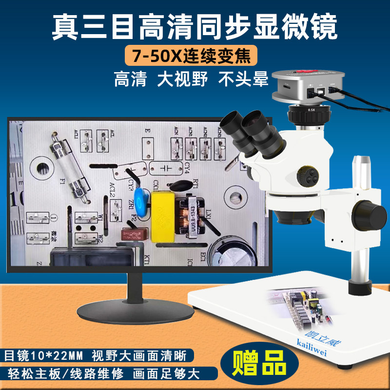 手机维修显微镜双三目高清体视连续变焦7-50倍电子主板焊接放大镜