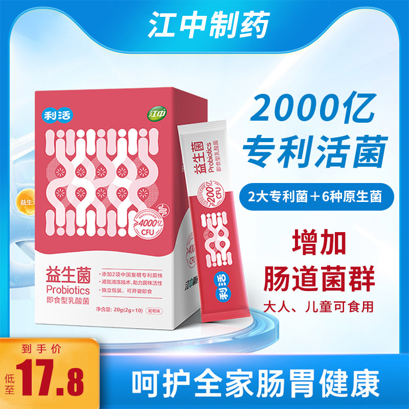 江中利活益生菌乳酸菌大人儿童肠胃肠道即食型益生菌6000亿20条装