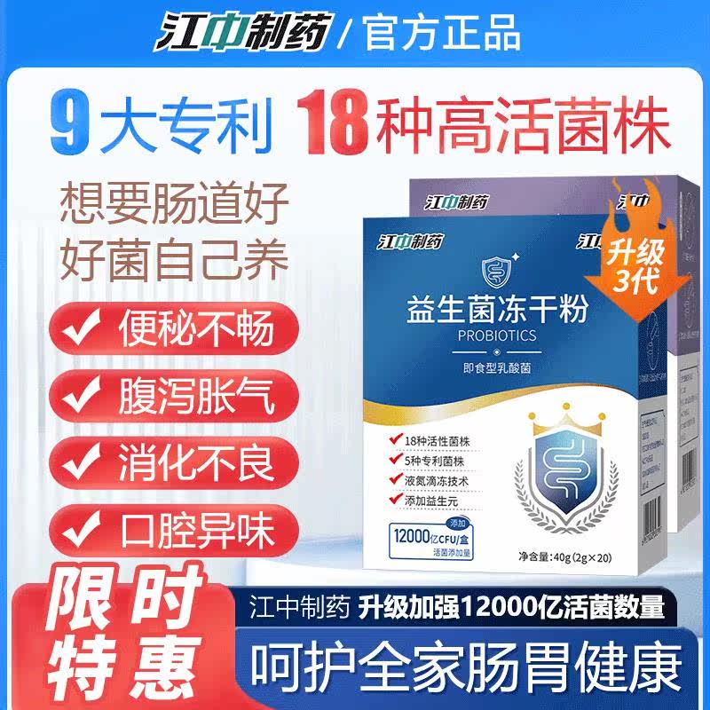 江中官方旗舰店正品益生菌成人大人儿童肠胃肠道非冻干粉调理