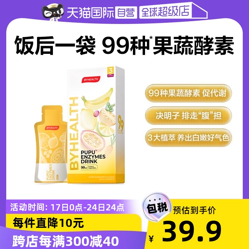 【尝鲜装】BYHEALTH汤臣倍健海外版酵素pupu饮3袋装果蔬清肠排油
