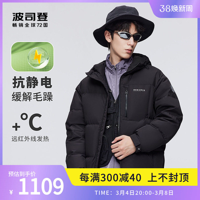 波司登奥莱冬男士短款连帽羽绒服秋冬外套棉服面包服抗静电