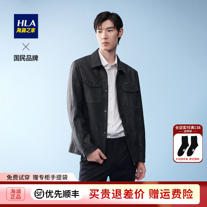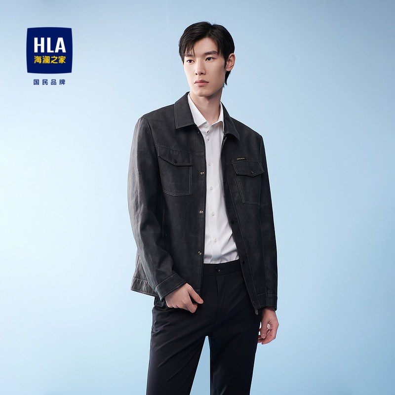 【奥莱】HLA/海澜之家2024翻领PU皮夹克光滑皮有型皮衣外套男