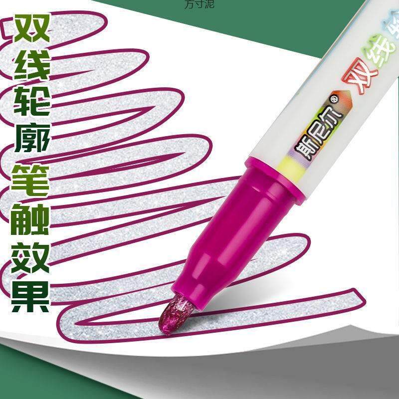 速发双线轮廓笔彩色标记马克笔套装多色荧光银光网红手账炫彩描边