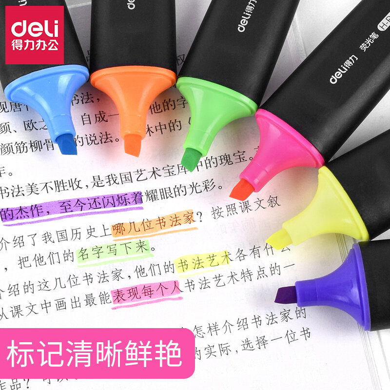 得力彩色荧光笔办公宽头标记笔多色学生重点划线笔炫彩萤光记号笔