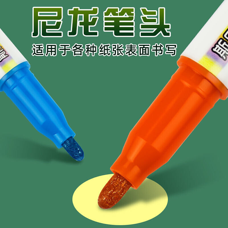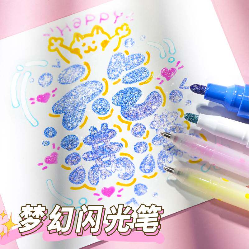 新款炫彩色金属闪光笔6色荧光闪粉水彩笔软头闪光手账笔珠光儿童