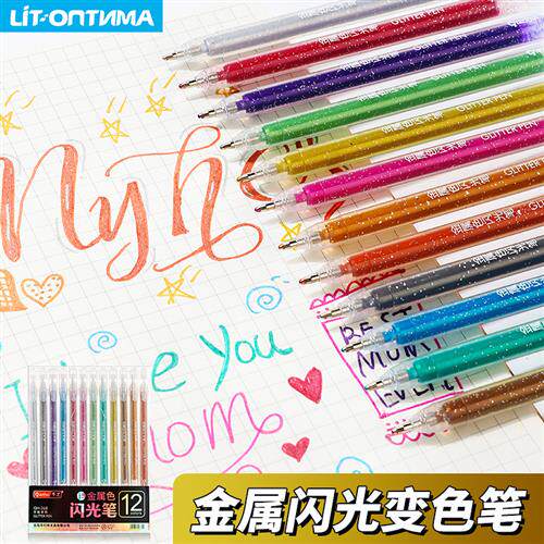 12色闪光笔 开学季爆款手账荧光笔 金属色笔迹亮光笔 炫彩啫喱笔