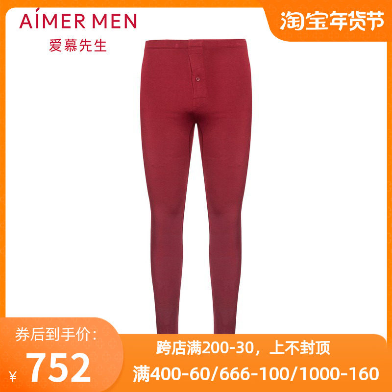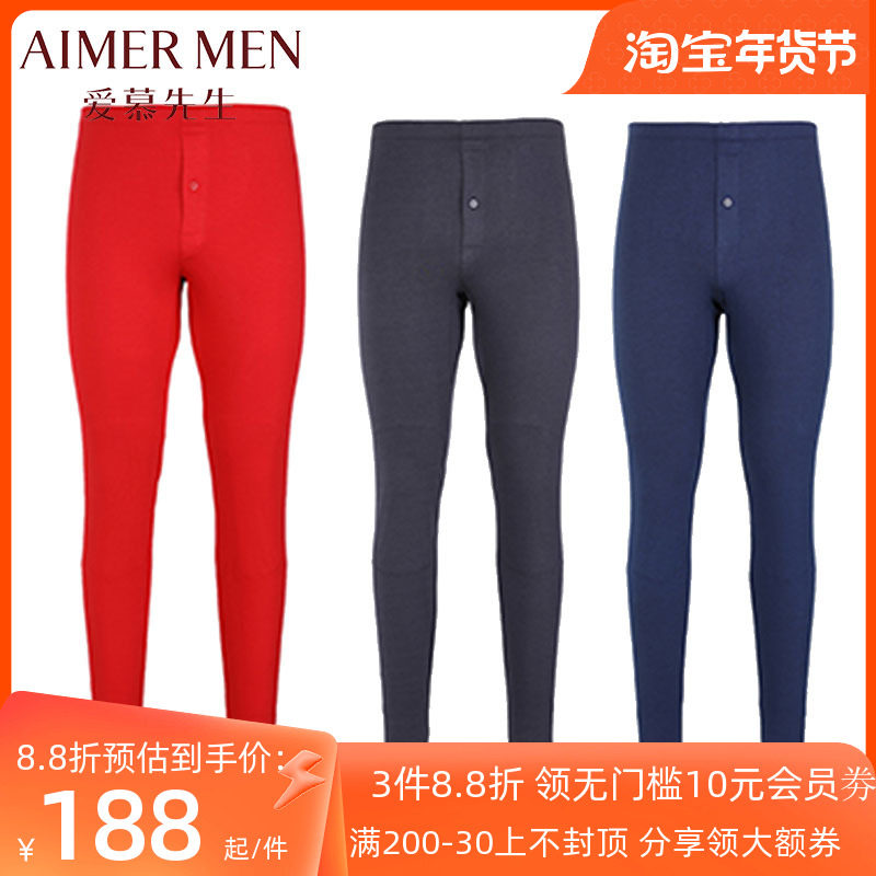 爱慕先生正品暖意亲肤单层包腰男士加绒中厚红色保暖长裤NS73B441