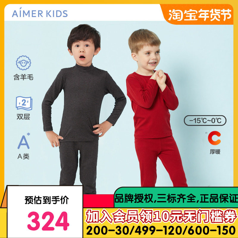 爱慕官方正品男童男孩秋裤 秋冬单层暖阳中厚打底保暖裤AK2732211