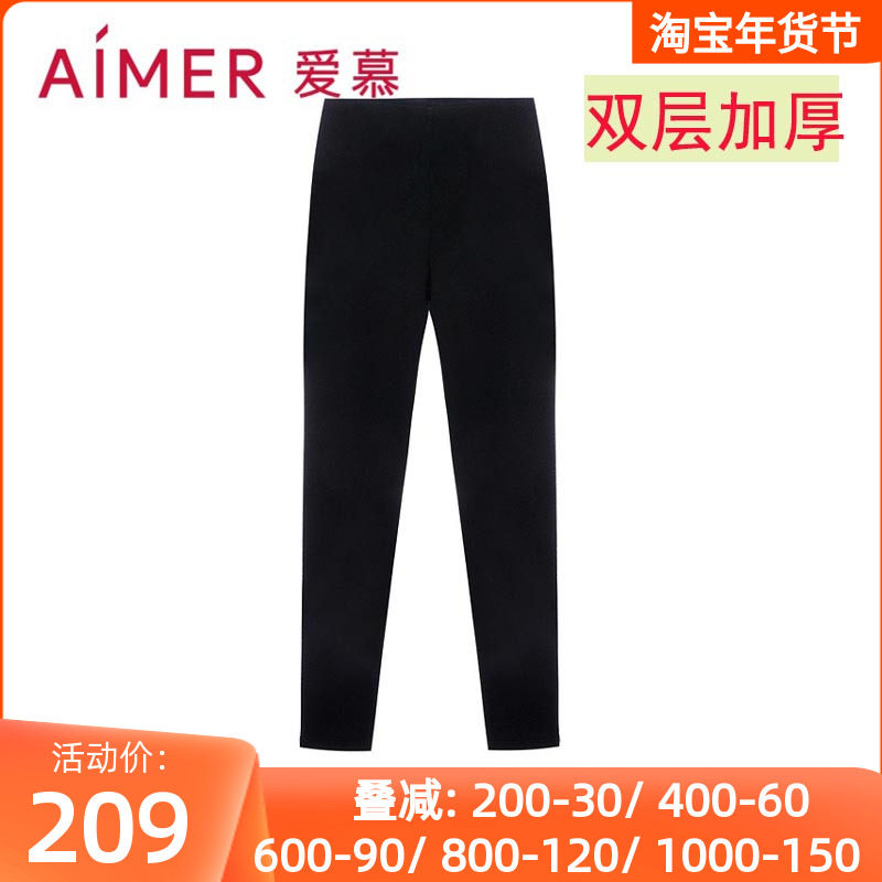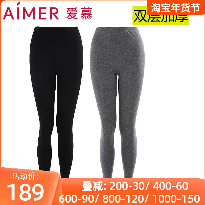 爱慕官方正品女士高腰修身秋冬暖尚羊毛双层加厚保暖长裤AM736382