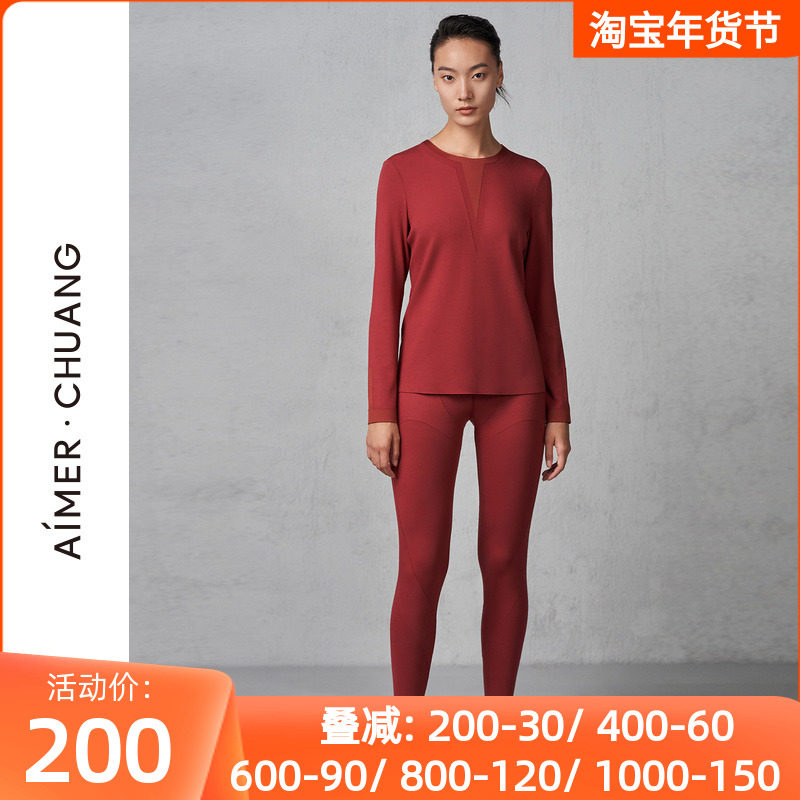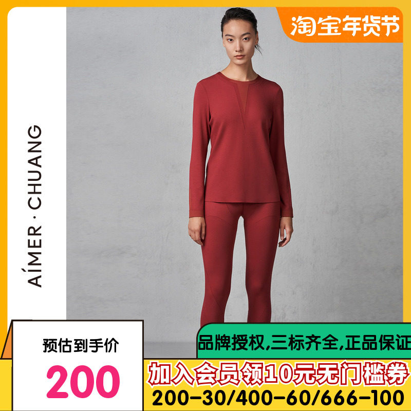aimer爱慕红色保暖内衣20AW暖绒双层长裤AM735212